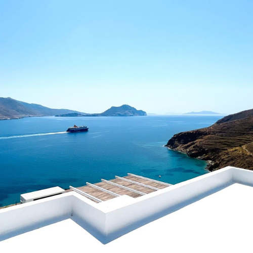 Ferries arrive at either Aegiali or Katapola ports. The hotel is closest to Aegiali, and round-trip port transfers on Amorgos are included in your retreat package.