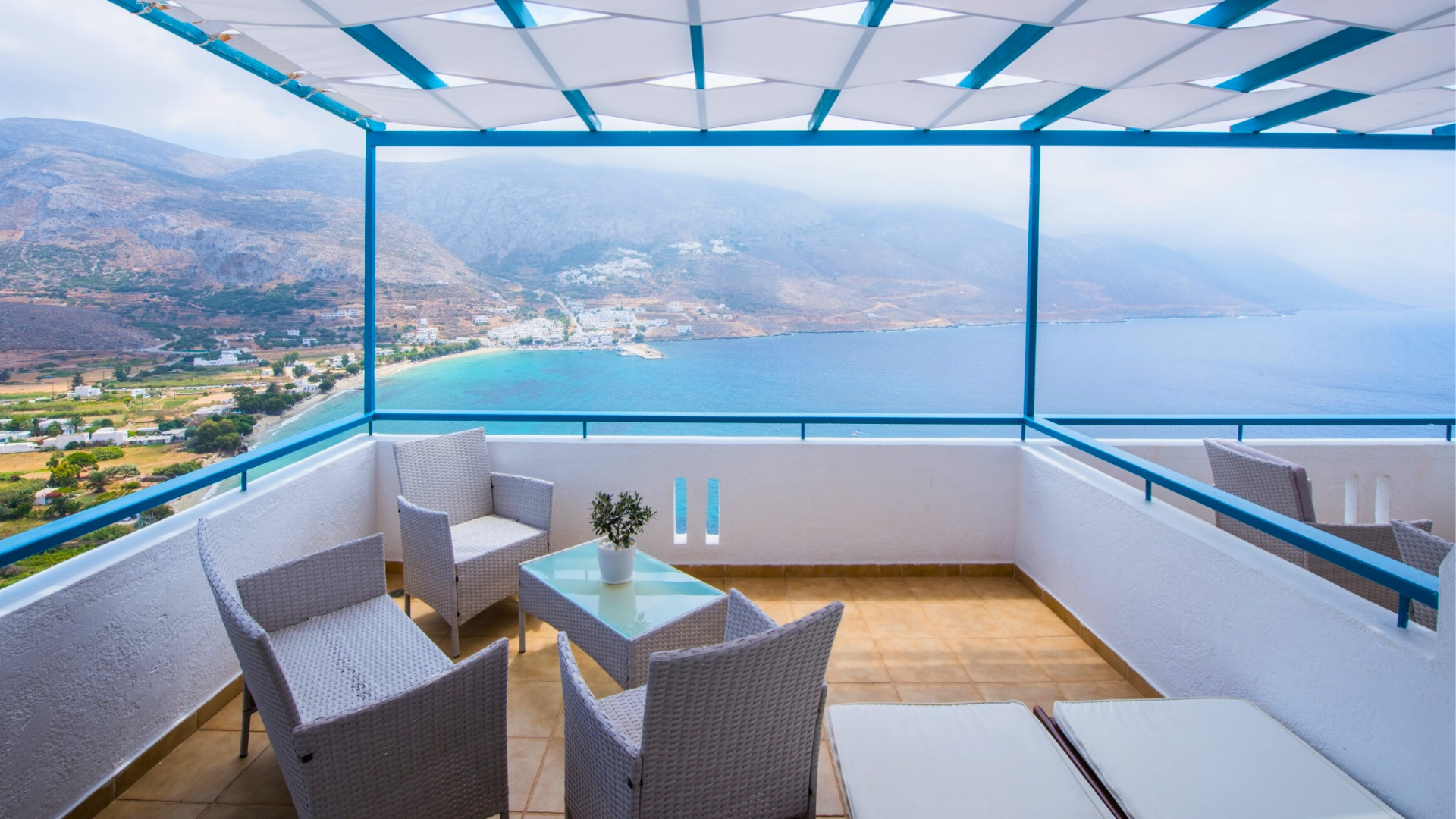 Relax in quiet elegance and enjoy the stunning Aegean view from the comfort of your private balcony.